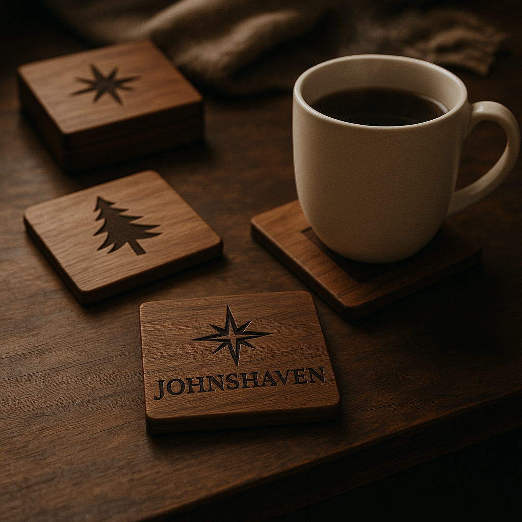 Handcrafted wooden coasters, décor, and personalised engraved gifts — made in the coastal village of Johnshaven, Scotland.
